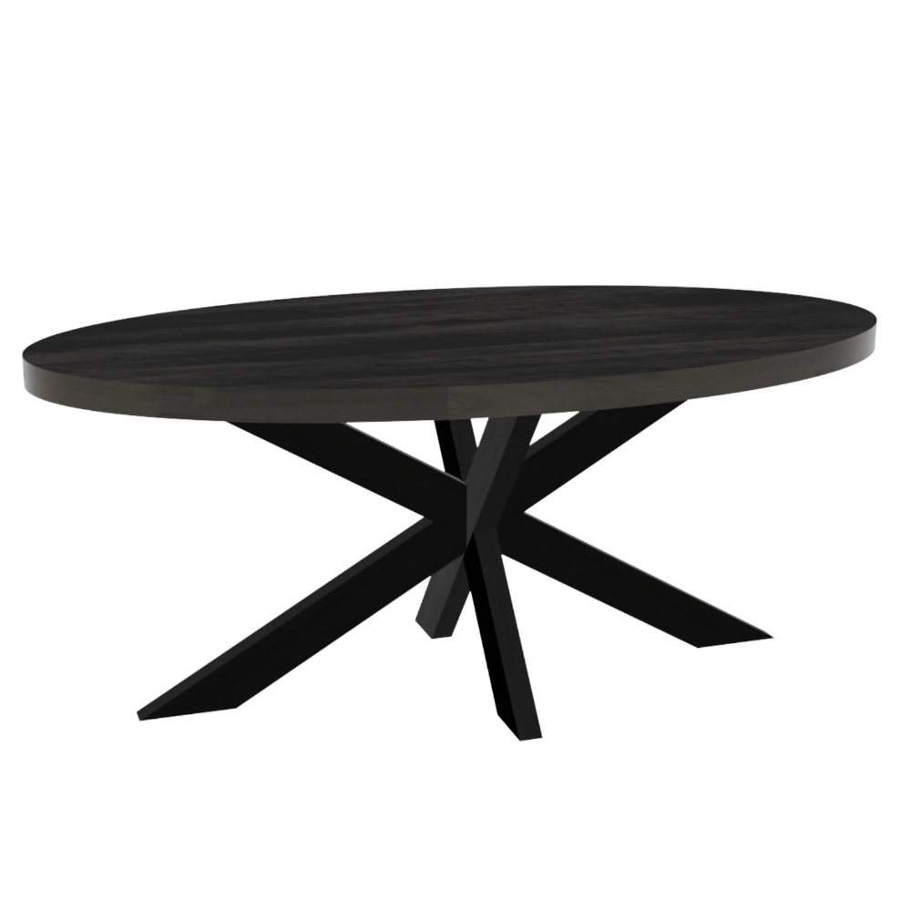 Eettafel Moko mangohout ovaal met visgraat - zwart